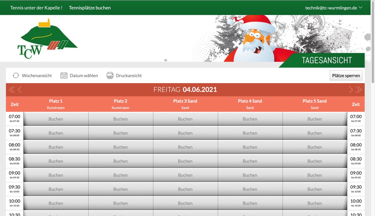 Bei Fragen und Anliegen zum Buchungssystem einfach eine Email an technik@tc-wurmlingen.de senden